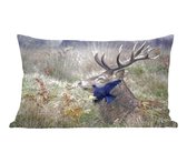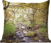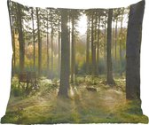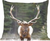 Sierkussen Cerf pour l'intérieur - Cerf sur la route dans la forêt - 40x40 cm - Coussin intérieur carré en coton