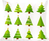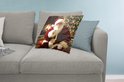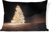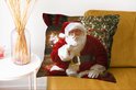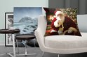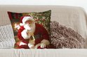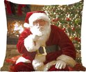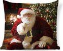 Sierkussen de Noël pour l'intérieur - Père Noël avec un arbre de Noël coloré en arrière-plan - 60x60 cm - Coussin intérieur carré en coton