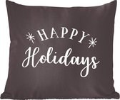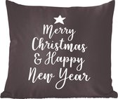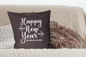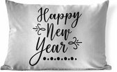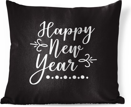 Sierkussen décoratif Citations du Nouvel An pour l'intérieur - Citation du Nouvel An ``Happy année '' - décoration murale noir - 60x60 cm - coussin intérieur carré en coton