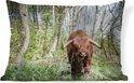 Sierkussen décoratif Highlander Cows pour usage intérieur - Highlander in the forest - 50x30 cm - coussin intérieur rectangulaire en coton