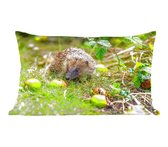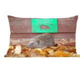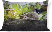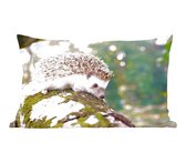 Sierkussen Hérisson pour l'intérieur - Hérisson marche sur une branche - 50x30 cm - Coussin intérieur rectangulaire en coton