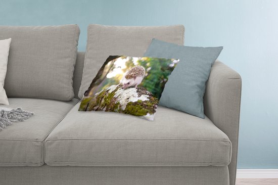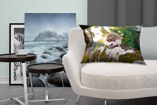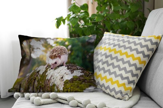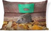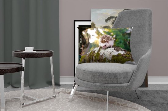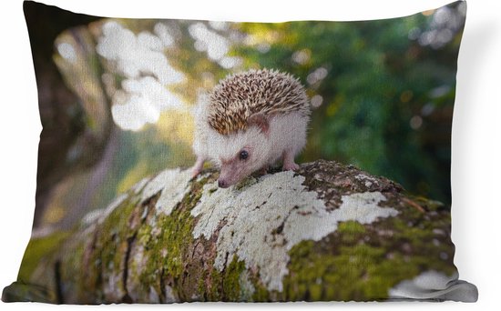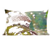 Sierkussen Hérisson pour l'intérieur - Hérisson marche sur une branche - 60x40 cm - Coussin intérieur rectangulaire en coton