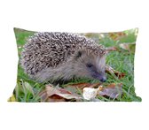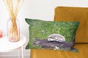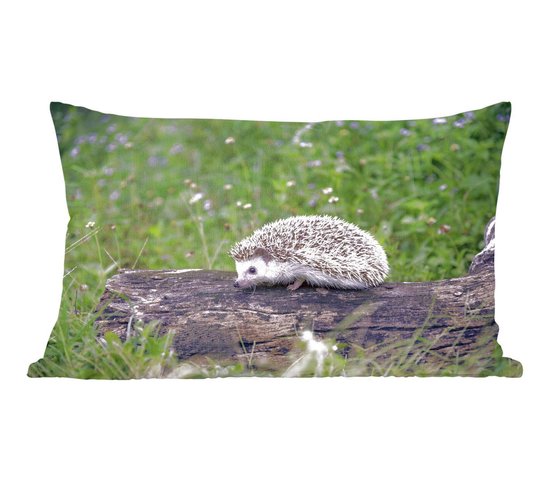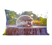 Sierkussen Hérisson pour l'intérieur - Hérisson sur souche d'arbre - 50x30 cm - Coussin intérieur rectangulaire en coton