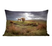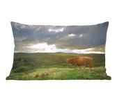 Sierkussen Highlander Cows pour l'intérieur - Highlander pendant le coucher du soleil - 60x40 cm - Coussin intérieur rectangulaire en coton