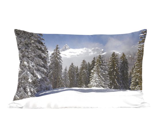 Sierkussen Noël pour l'intérieur - Les arbres enneigés des montagnes créent une atmosphère de Noël - 50x30 cm - Coussin intérieur rectangulaire en coton