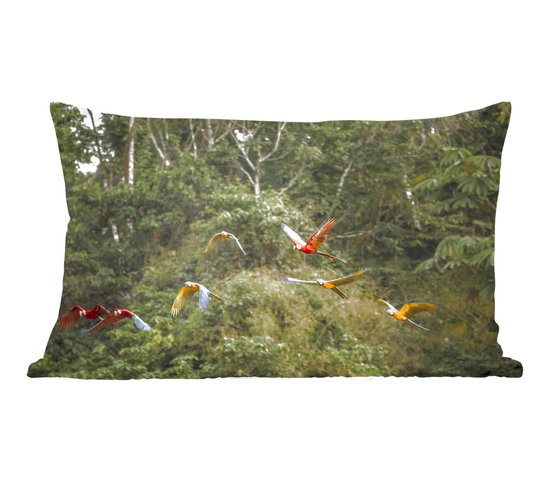 Sierkussen pour la vie forestière à l'intérieur - Perroquets dans la forêt tropicale - 60x40 cm - Coussin rectangulaire en coton