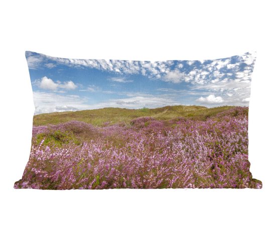 Sierkussen Waddenzee pour l'intérieur - Bruyère fleurie dans les dunes près des Waddenzee - 50x30 cm - Coussin intérieur rectangulaire en coton