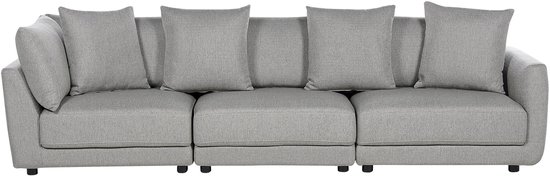 Canapé 3 places rembourré avec coussins supplémentaires. Ce canapé rembourré est fabriqué en polyester de haute qualité et constitue un complément parfait à votre pièce. Le design classique et durable s'intègre parfaitement dans différents styles d'intérieur, du vintage au moderne. Le canapé est livré avec un repose-pieds, qui peut être utilisé comme siège supplémentaire ou comme grand pouf, et un ensemble de coussins qui rendent le canapé encore plus confortable. Le canapé a un siège moelleux, un coussin de dossier relaxant et une finition gris clair sophistiquée qui le distingue des autres meubles du salon. Détails : Type de produit : Canapé 3 places Style : Contemporain Couleur: gris Capuche : Gris clair Type de matériau : Tissu Matière principale : Polyester Overig matière : matière synthétique Matériau de remplissage : Mousse Composition du matériau : 100 % polyester Style d'accoudoir: Droit Accoudoir : Oui Matériau du dossier rembourré : Oui Motif : Monochrome Construction du siège : Élastique Densité de la mousse assise : 28 kg/m3 Nombre de places : 3 personnes Dimensions : Hauteur des accoudoirs : 63 cm Profondeur : 102 cm Épaisseur de l'assise : 28 cm Hauteur d'assise : 43 cm Largeur : 300 cm Hauteur : 86cm Surface d'assise : 264x68 cm Poids : 123 kg Capacité de charge par personne : 130 kg L'offre comprend : 1 x canapé, 1 x pouf, 4 x coussin Caractéristiques principales : Assise extrêmement confortable, S'adapte à de nombreux styles d'intérieur, Design moderne, Finition stable, Matériau de haute qualité, Housses de coussin amovibles, Recouvert tout autour et peut donc être positionné librement Informations sur l'assemblage : assemblage complet requis. 20-40 minutes Conseils d'entretien: Polyester: 1. Aspirez les surfaces avec une tête de brosse appropriée 2.Nettoyez avec un shampooing sec et une éponge humide ou un détergent doux. Bois d'eucalyptus : 1. Séchez immédiatement après le nettoyage pour éviter la collecte d'eau 2. Nettoyer uniquement avec un détergent doux et un chiffon doux, dans le sens du grain du bois 3.Uniquement pour les articles avec finition huilée : peuvent être ré-huilés au fil du temps pour les maintenir en bon état.