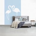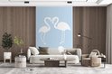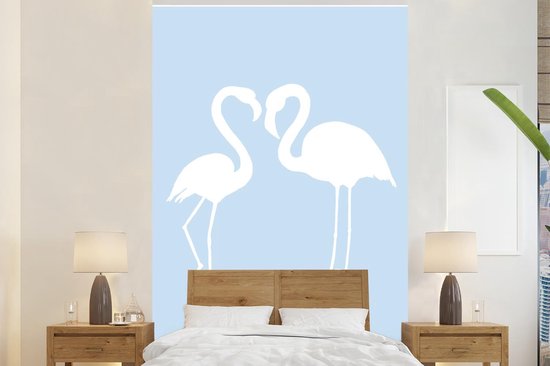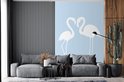 Silhouettes Witte de flamants roses sur fond bleu clair 195x300 cm