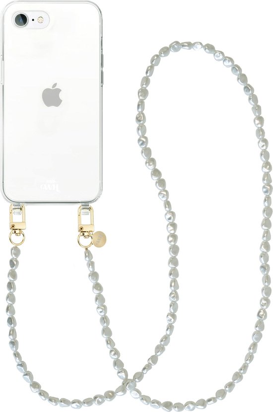 siliconen hoesje xoxo Wildhearts - Convient pour iPhone 7/8 Plus - Pearlfection - Étui de téléphone - Étui avec cordon - Collier de perles - cordon téléphonique long - Étui transparent (variante longue)