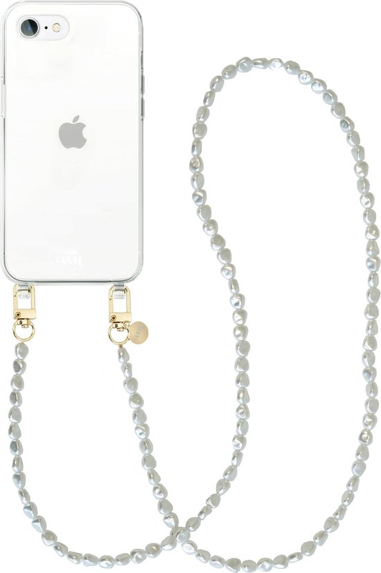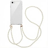 siliconen hoesje xoxo Wildhearts - Convient pour iPhone 7/8/SE 2020/2022 - Pearlfection - Étui de téléphone - Étui avec cordon - Collier de perles - cordon téléphonique long - Étui transparent (variante longue)