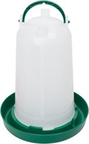 Silo d'alimentation de bonne qualité pour un volume de 6 kilos pour la volaille! Le silo d'alimentation est fait de plastique de haute qualité, ce qui le rend presque incassable. Les silos d'alimentation sont faciles à utiliser et rapides et faciles à nettoyer. Ils sont équipés d'une poignée pratique, ils peuvent donc être utilisés debout ou suspendus. L'anti-gaspillage signifie que le désordre appartient au passé. Si vous suspendez le silo d'alimentation, prenez la hauteur de l'arrière du poulet, de la dinde ou de la pintade comme hauteur du fond du silo d'alimentation. Nous recommandons de toujours placer les silos d'alimentation sur le sol chez les poulets. Marque JUNAI Disponible en Rouge Vert Aussi disponible en 1 kilogramme 3 kilogrammes 10 kilogrammes Avec le silo d'alimentation de 6 kilos, vous obtenez une alimentation très solide à la maison!