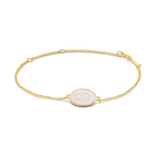 Silventi 9LA-20058-G Bracelet en Argent avec Lettre - G - Ovale - 12x8.6mm - Wit - Argent - 16+2+3cm - Plaqué Or/ Or sur Argent
