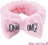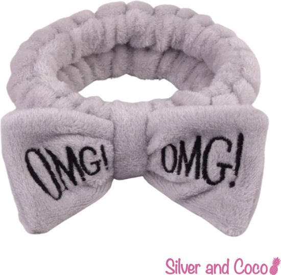 SilverAndCoco - OMG Hairband Bow Bandeau élastique épais et moelleux pour le maquillage / OMG ! Terry Fleece Maquillage Spa Sommeil Bandeaux à cheveux Femmes / Élastique Filles Maquillage Bandana - Grijs