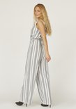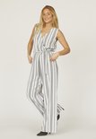 C'est une combinaison longue sans manches à rayures. La combinaison a des jambes larges et une ceinture à la taille.