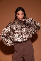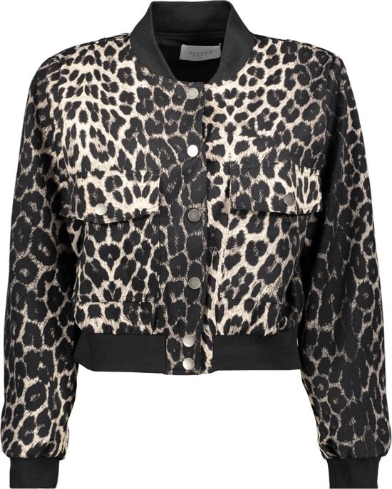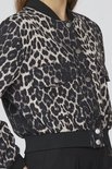 Manteau court de SisterS Point avec un motif animalier intégral. Ce modèle possède un col côtelé et des boutons pression. Cette veste possède des manches longues et des poches à rabat sur le devant. Lavage à la main, repassage à basse température max 110°c, pas de javel, pas de sèche-linge, pas de nettoyage à sec
