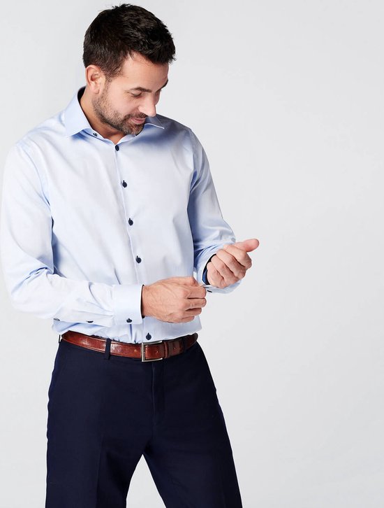 Une chemise professionnelle, élégante et durable à son meilleur. C'est le bleu des affaires ! Spécialement conçu pour vous. Des matériaux durables qui vous permettent de vous sentir à l'aise tout au long de la journée. Facile à combiner. SKOT croit en une industrie de la mode 100 % circulaire. C'est pourquoi cette chemise est non seulement fabriquée à partir de tissus durables, mais présente également des détails durables tels que des boutons en corozo et du fil de couture en polyester recyclé. Vos essentiels du quotidien, coupe slim et uniques de manière durable.