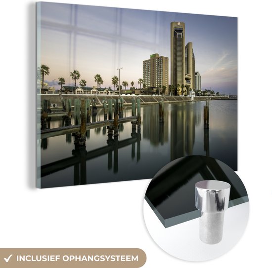 Skyline de Corpus Christi immédiatement après le lever du soleil au Texas, USA Plexiglas 180x120 cm - Tirage photo sur Glas (décoration murale en plexiglas) XXL / Groot format!