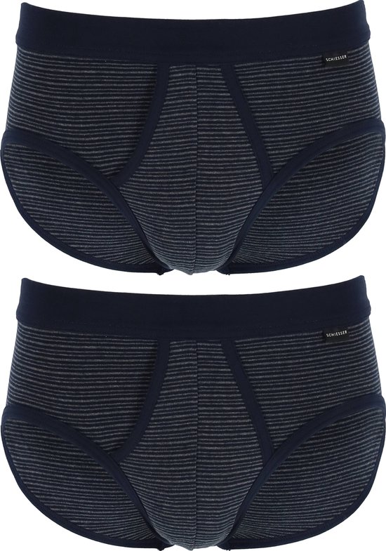 Slip de sport SCHIESSER Original Classics (lot de 2) - Feinripp avec braguette - rayé bleu foncé - Taille: M