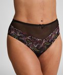 Maak een statement in deze ultraflatterende slip met hoge taille, ontworpen om je silhouet te corrigeren en glad te maken. De delicate geborduurde bloemen voegen een vleugje elegantie toe aan de ondersteunende pasvorm. Combineer hem met de bijpassende bh voor moeiteloos verfijnde en zelfverzekerde look.
