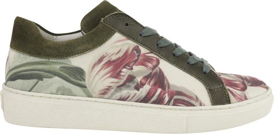 Sneaker spécial avec l'art «Tulipes et pavot» par l'ancien maître De Heem / Rijksmuseum. La partie imprimée de ces baskets est faite d'un matériau de bouteilles en plastique recyclé et ces baskets sont également finies avec du cuir nappa de haute qualité à l'extérieur. La doublure est entièrement en cuir tanné sans chrome. Mieux pour l'environnement car moins d'eau et de produits chimiques sont utilisés dans le processus de production, mais aussi mieux pour vos pieds. Ces belles baskets ont également une semelle intérieure amovible pour que vous puissiez utiliser vos propres semelles. La semelle est en caoutchouc et également cousue sur toute la longueur de sorte qu'il est impossible que la tige se détache de la semelle.