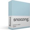 Ce drap Snoozing est en satin de coton. Ce matériau est doux et soyeux et a une brillance fine grâce à la reliure en satin. Le satin de coton est absorbant l'humidité, hautement respirant et a un effet rafraîchissant en été. Ce drapé est également très résistant, ce qui garantit une longue durée de vie. La feuille peut être lavée à une température de 40 degrés et convient au sèche-linge, vous avez donc toujours une feuille fraîche et propre.