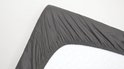 Ce drap-housse Snoozing est en coton. Ce drap-housse simple mesure 90 sur 220 cm, a une hauteur d'angle de 30 cm et est disponible dans la couleur anthracite.