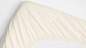 Ce drap-housse fendu Snoozing est en coton. Ce drap-housse double a une taille de 160 x 210/220 cm, a une hauteur d'angle de 30 cm et est disponible en ivoire.