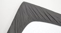 Ce drap-housse Snoozing est en coton. Ce drap-housse double a une taille de 200 par 220 cm, une hauteur d'angle de 40 cm et est disponible dans la couleur anthracite.