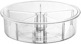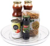 Ce plateau tournant So Clever est le complément parfait à votre placard de cuisine ou garde-manger. Ce plateau paresseux utilise un mécanisme pivotant pour faire pivoter les articles à 360 degrés, vous donnant ainsi un accès facile aux produits. Cet organisateur est un bon ajout à votre placard de cuisine. Vous pouvez par exemple y stocker des bocaux ou des bouteilles. Le plateau tournant est fabriqué en matériau recyclable et en plastique PET de haute qualité. Grâce aux roulements à billes de haute qualité, vous obtenez une rotation extrêmement douce. De plus, le produit est totalement transparent et sans BPA. Ce produit bénéficie d'une garantie de 12 mois. Attention : le produit doit être lavé à la main et ne passe donc pas au lave-vaisselle. Ce plateau tournant a une hauteur de 3,7 cm, mais il existe également une variante plus haute