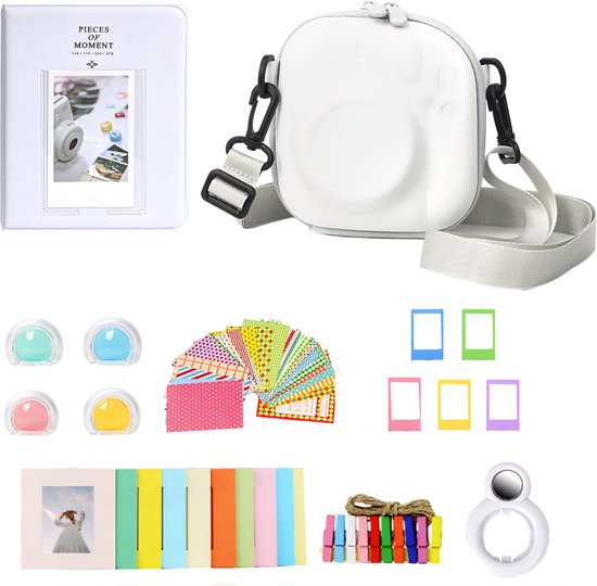 Somstyle Set Accessoires de vêtements pour bébé de Luxe adapté pour Fujifilm Instax Mini 12 – Étui étanche avec sangle de transport et plus encore – Wit