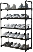 COMBIEN DE PAIRES DE CHAUSSURES PORTENT SUR L'ÉTAGÈRE ? 8-10 paires ? Geen de problème ! Chaque étagère contient 5 paires de chaussures pour femmes ou 4 paires de chaussures pour hommes. Vous pouvez également mettre ce porte-chaussures à l'envers afin qu'il y ait un espace de rangement supplémentaire pour vos baskets et pantoufles sous l'étagère inférieure.