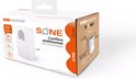 Avec cette sonnette supplémentaire SONE & SONE+ vous pouvez étendre la portée de la sonnette et répéter la sonnerie dans toute la maison. Il est compatible avec les gammes SONE et EcoBell. Il fonctionne avec une alimentation de 110-240V AC 50/60Hz 0. La fréquence est de 433,92 MHz. Il est de couleur blanche et est fabriqué en ABS.