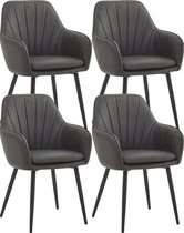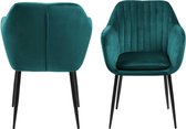Bam & Boo - Chaise de salle à manger Elena - Set de 6 - vert - Velours - Velours - Velours - Industriel - avec accoudoir