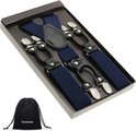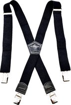 Sorprese - Chic Luxe - Bretelles homme - uni bleu foncé - cuir noir - 6 clips extra solides