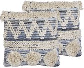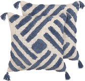 SORREL - Sierkussen lot de 2 - Blauw - 45 x 45 cm - Katoen