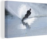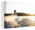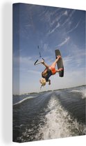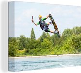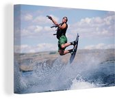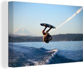 Sous le coucher du soleil un wakeboarder fait une énorme toile de saut 60x40 cm - Tirage photo sur toile (Décoration murale salon / chambre)