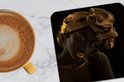 Portrait d'une femme au foulard. L'image contient des éléments dorés.