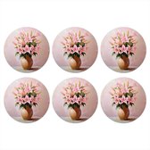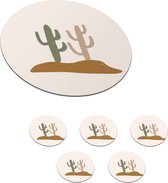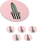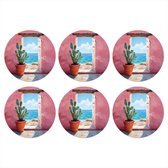 Sous- Sous-verres pour verres - Ronds - Cactus - Design - Pot de fleurs - Rose - 10x10 cm - Sous-verres en verre - 6 pièces