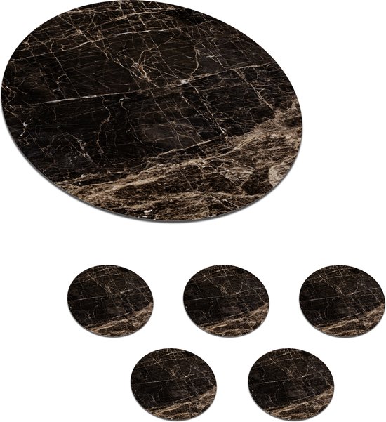 Sous- Sous-verres pour verres - Ronds - Imprimé marbré - Zwart - Marron - Classique - 10x10 cm - Sous-verres - 6 pièces