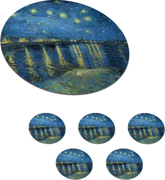 Sous- Sous-verres pour verres - Ronds - La nuit étoilée - Peinture de Vincent van Gogh - 10x10 cm - 6 pièces