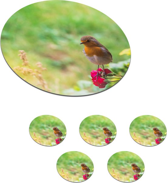 Sous- Sous-verres pour verres - Ronds - Robin - Rose - Rouge - 10x10 cm - 6 pièces