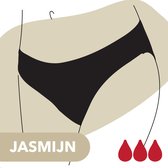 J'ai testé ce sous-vêtement plusieurs fois maintenant et je suis très satisfait. Ce modèle (Jasmine) est le plus confortable et me suffit pour des jours de règles normales. S'adapte bien et ne fuit pas. On dirait un sous-vêtement un peu plus épais mais on s'y habitue rapidement. Vous pouvez voir les bords à travers des vêtements serrés avec celui-ci. C'est moins avec le modèle spandex (Emma). J'utilise celui avec la bande ventrale haute (Madelief) pour les premiers jours difficiles et c'est aussi très agréable. La coupe avec dentelle était un peu plus lâche pour moi même si elle était de la même taille que les autres coupes.