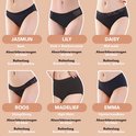 Sous-vêtements menstruels 4 couches étanches pour une journée/nuit sans soucis. Les sous-vêtements menstruels sont une alternative durable aux tampons, serviettes hygiéniques et protège-slips. Perfect à utiliser en combinaison avec les coupes menstruelles Bamboozy .