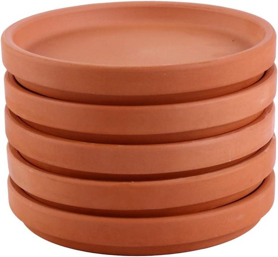 Sous-verre rond en pot de plantes en terre cuite - Set de 5 - Plateau de base de jardinière - Plaque de base en terre cuite de boîte à fleurs - Accessoire de jardinière de balcon