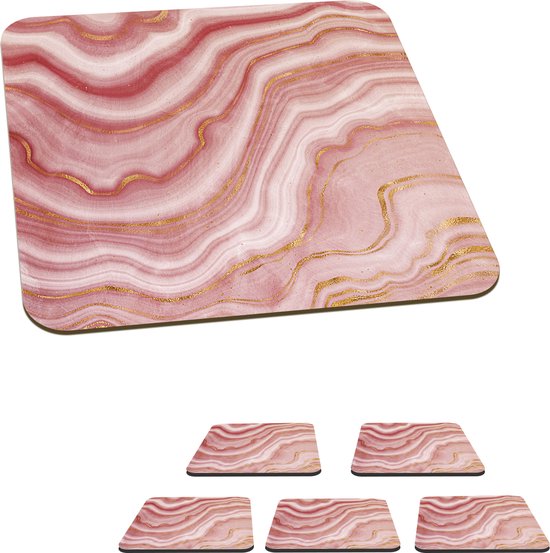 Sous-verres de Verre - Agate - Rose - Pierres - Cristal - 10x10 cm - Dessous de verre - 6 pièces