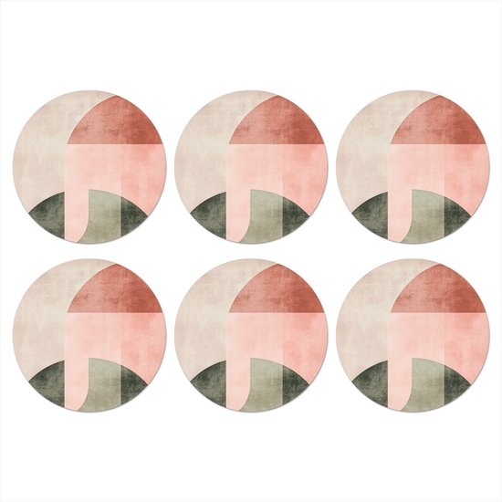 Sous-verres de verre - Rond - Cercle - Abstrait - Rose - 10x10 cm - Dessous de verre - 6 pièces