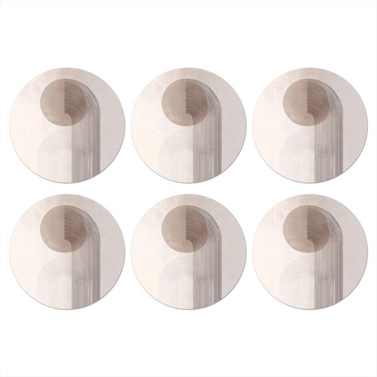 Sous-verres de verre - Rond - Minimaliste - Cercle - Gris clair - 10x10 cm - Dessous de verre - 6 pièces