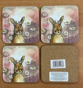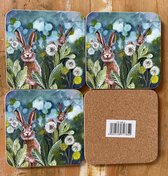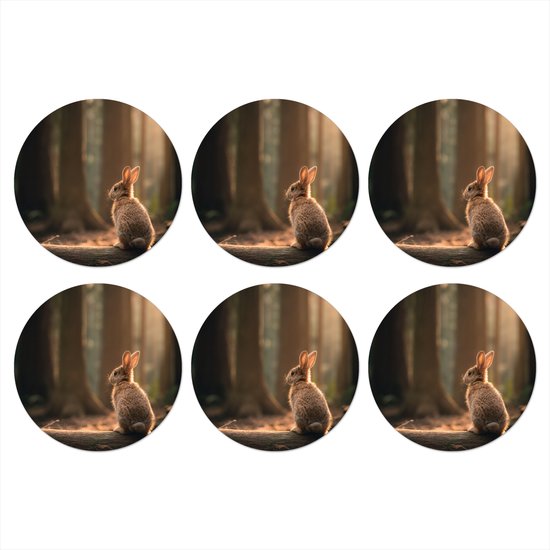 Sous-verres de verre ronds - Lapin - Forêt - Rayons de soleil - 10 x 10 cm - Lot de 6