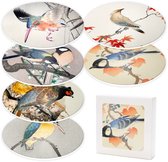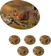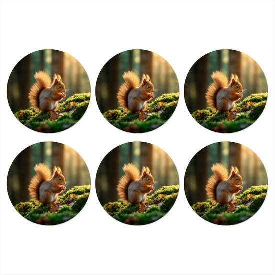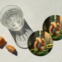 Sous-verres de verre ronds - Motifs écureuil, noix et herbe - 10 x 10 cm - Lot de 6